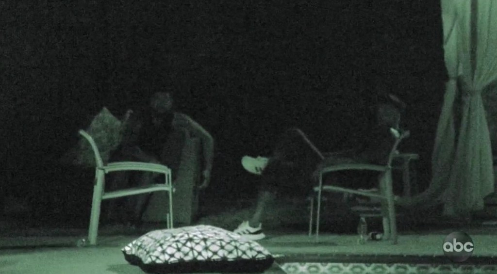 This brings me to the guys who laughably clung to their delusions that they were still in the game.[1] That some convos were laughably captured on a secretive night-cam only added to the ridiculiciousness. Things really got to ridiculicious heights after Chris asked ThreeD in front of the guys if he could step outside to talk to him privately. ThreeD doesn’t ever return and yet, while he’s canoodling all night with CCQ (the producers managed to pull off a Fantasy Suite date, too), the guys continue to find reasons to play down the obvious nature of their relationship. Competitive is one thing. But when you’re losing the election when nearly all the votes are in, just concede already just fight it in court when you’re behind by 50 points with one minute left, take a non-proposal knee and get off the field.