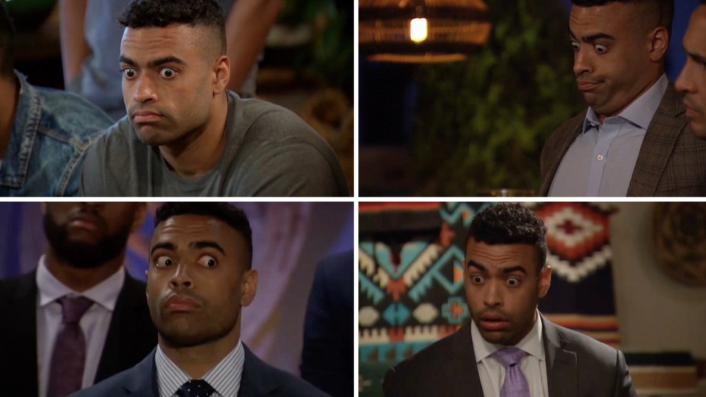 After about 20 unnecessary minutes of that – during which MDD said, “Everybody needs to go to therapy” (I think she was including us, the viewing audience) – the (convincing-themselves-they-are) happy couple comes together so that Blake can tell his ex Tayshia, the woman he wanted to be his fiancé, how much he loves his fiancé Katie after we saw how hurt she still is at her ex Greg, the guy she wanted to be her fiancé.