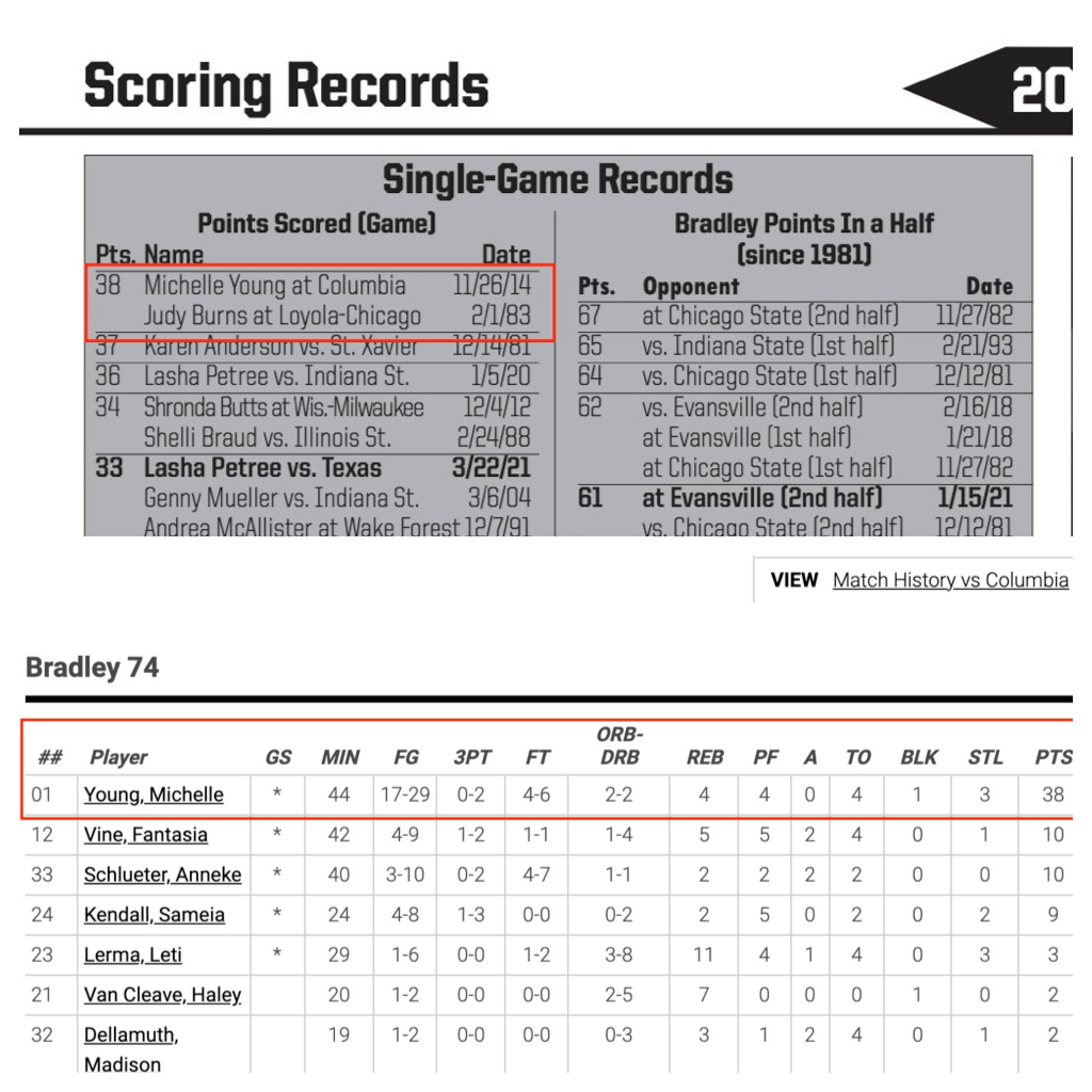 Also, as we hoopers (basketball players) like to say, Michelle was a bucket! (somebody who scores at will) Check out the receipts from her time on the Bradley University ball team.
