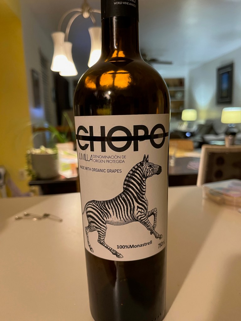 P.S. This week’s viewing wine was a delicious Chopo Monastrell. Rich, intense, and around $10.