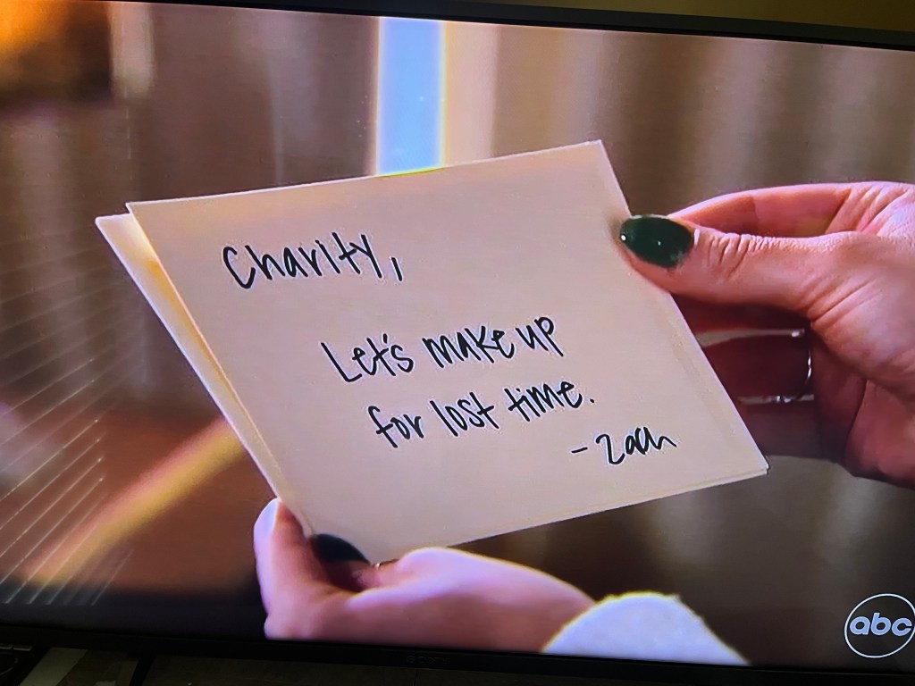 At the non-dinner dinner with Charity, Zach gets to know her for her and also throws shade at Rachael, again. Zach seems to have a requirement that each girl he has a 1-on-1 with must hear how Rachael did him dirty.