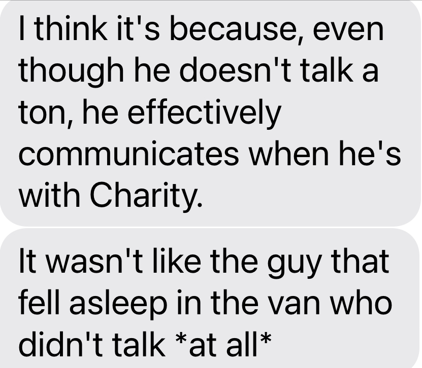 A good time was had by all. Charity was impressed with and loved by Ma and Gram. And L-words were given by Dotun and Grandmama.
